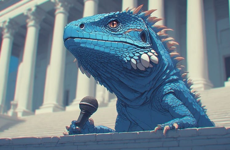 I speak finally, of course, of the Modified-Closed Rules near-always demanded by the Speaker of the House and stupidly approved by its remaining members every two years. On an unrelated note, the term for a gelded lizard is gelding, which I thought odd. You’d think it’d be something different. Maybe like Your Voice In Congress. But it isn't. Gelding is shorter, at least. I asked AI what the term for a lizard who gelds themselves is and they just showed a picture of Robert Reich. It seems confused. This is probably because it hasn’t actually ever seen a debate occur in Congress in its own lifetime.